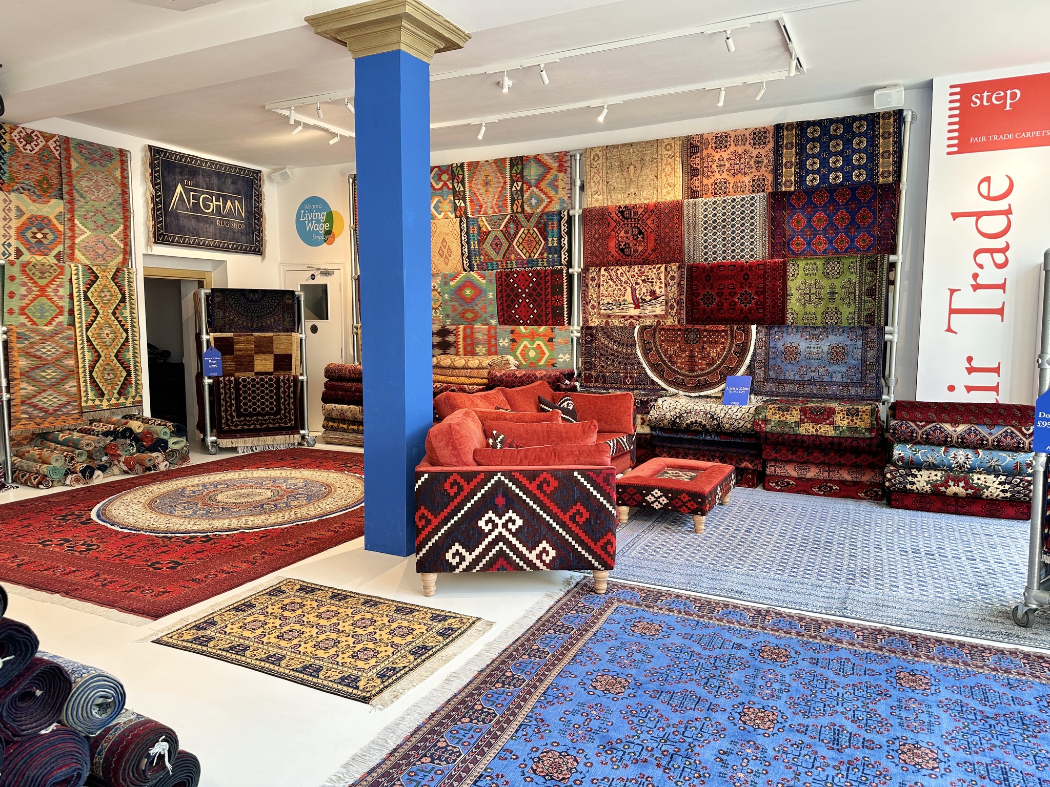 The shop sells solely Afghan rugs. It’s also the only retail shop in Britain granted Label-STEP accreditation (guaranteeing fair and ethical trade in the worldwide rug business).